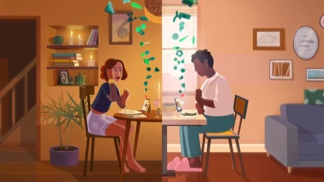 We used UI, stickers, and cryptography symbols to create an artistic metaphor of privacy. The visual technique shows messages leaving the phone and transforming into cryptography as they fly from the original sender to the people receiving the message. With this approach, we graphically demonstrate how every WhatsApp video call or message is encrypted end-to-end for complete privacy between you and the people with whom you’re connecting. Today, the stories we tell are inspired by real things that happened during the COVID-19 pandemic – but this technique also has the potential to express WhatsApp's encryption in post-pandemic situations.